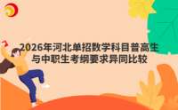 2026年河北单招数学科目普高生与中职生考纲要求异同比较权威发布!同样是数学考试,普高生和中职生的要求竟然大不相同!考试范围有哪些差异?难度设置如何区别?题型结构相同吗?分值
