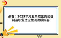 为了帮助2025年河北单招三类装备制造专业的考生更好地备考职业适应性测试,本站特别推出了《职业适应性测试模拟卷》。每道题目都经过精心挑选,并附有详细的答案解析,帮助考生理解解