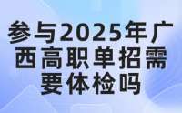 2025年的广西高职单招时间越来越近了,今天小编为大家解答参加广西高职单招是否需要体检问题,希望能给大家带来一些帮助。参加2025年广西高