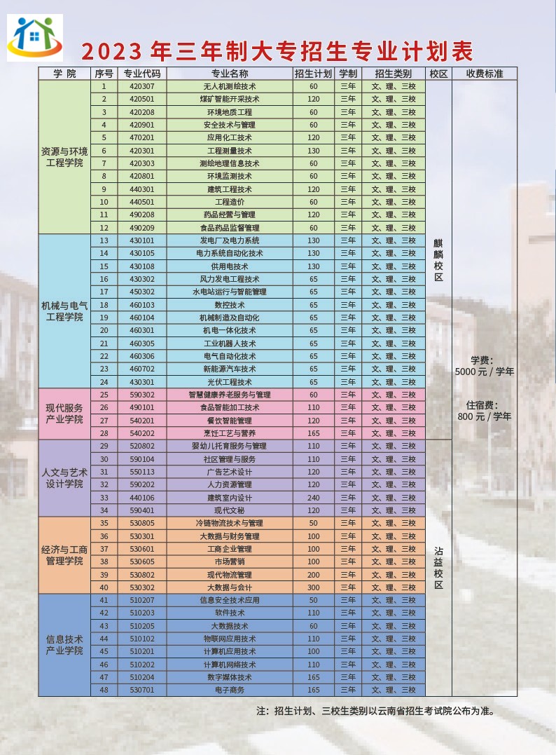 云南能源职业技术学院三年制大专招生计划