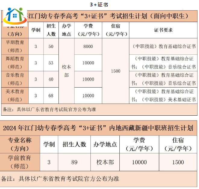 以上就是有关2024年广东江门幼儿师范高等专科学校3+证书招生计划的内容,仅供参考,最终情况请以报考当年实际情况为准。更多广东中职中专技工招 生信息、广东中考资讯,广东技校资讯,敬请关注广东初中升学网。