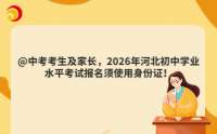 @中考考生及家长,2026年河北初中学业水平考试报名须使用身份证!