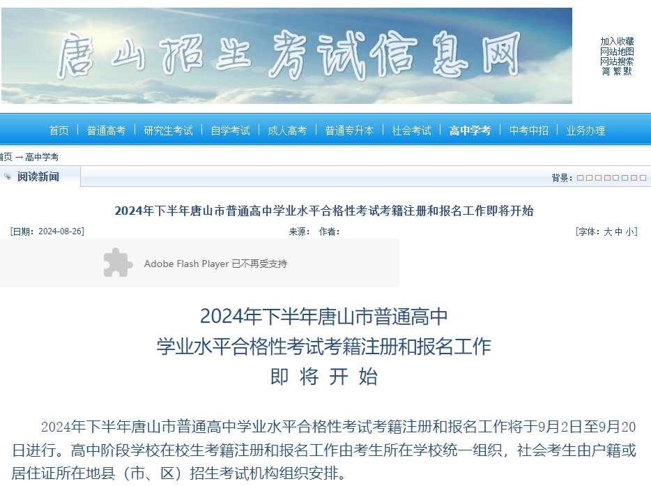 2024年下半年唐山市普通高中学业考考籍注册通知