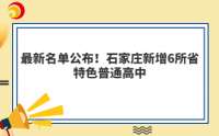 最新名单公布!石家庄新增6所省特色普通高中