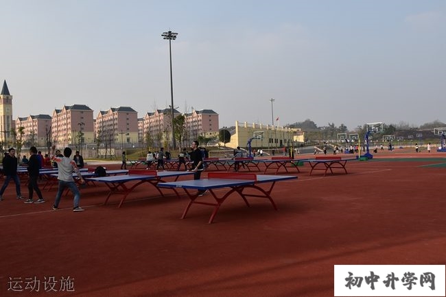 学校配备学校配备图书馆,理化生实验室,微机室,电子阅览室;校园内有完善的校园网、学生电视台;宿舍为标准四人间公寓,配备空调、淋浴;学校教室均安有空调;校内有平价超市;配备400米标准跑道、乒乓球场、篮球场、羽毛球场。