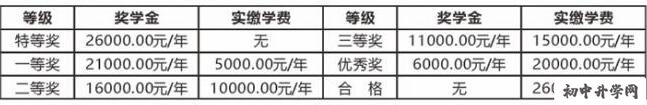各等级奖学金及收费标准如下: