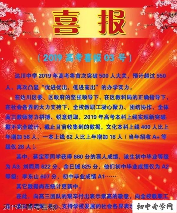 2021年四川省达川中学初中高考喜报达川中学2020年高考“优进优出,低进高出,艺体突出,实现突破”在达川区委、区政府的坚强领导