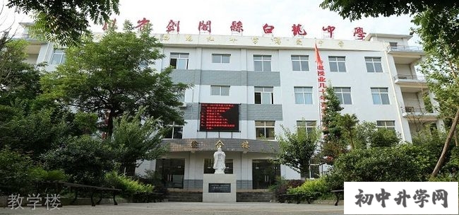 四川省剑阁县白龙中学,位于全国小集镇重点建设示范镇白龙镇八庙山下,临津河畔,是一所具有较大规模的农村普通高级完全中学。学校办学历史悠久,底蕴丰厚,创建于1955年,始定名为“四川省剑阁县第三初级中学”;1972年增设高中;1980年经省教厅批准,升格为高完中更为现名。