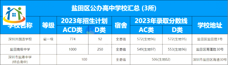 深圳外国语学校为市直属学校,也是该区唯一一所排名前十的高中。盐高近年发展很迅速,是一所很有特色的高中。盐港中学(综合高中)主要走艺体高考方向。