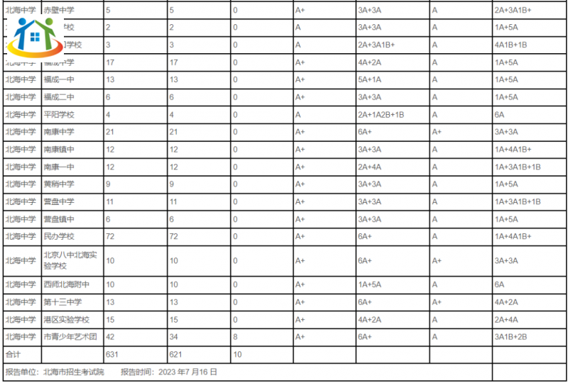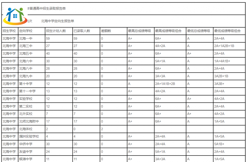 北海市辖区2023年普通高中招生录取报告单