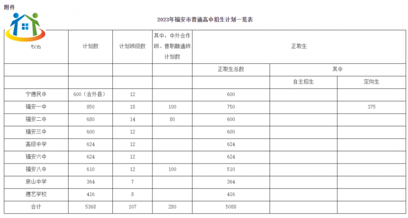 附件:2023年福安市普通高中招生计划一览表