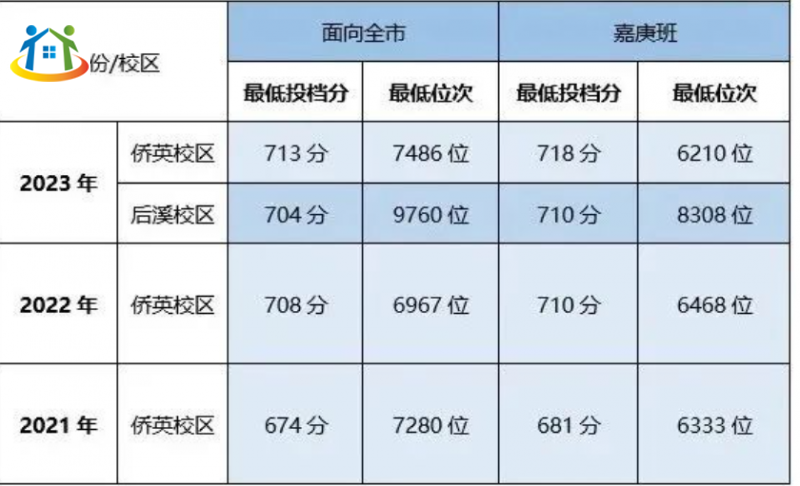 侨英校区:面向全市平均最低投档分为698分,平均最低位次为7244位;嘉庚班平均最低投档分为703分,平均最低位次为6337位
