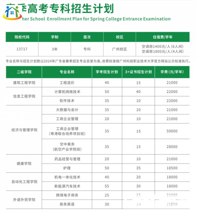2024年广州科技职业技术大学3+证书招生计划