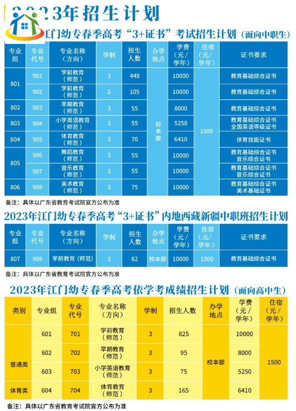 23年广东江门幼儿师范高等专科学校3+证书招生计划