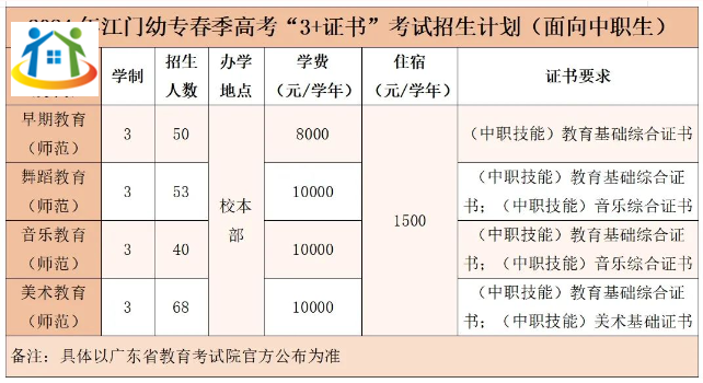 以上就是有关2024年广东江门幼儿师范高等专科学校3+证书招生计划的内容,仅供参考,最终情况请以报考当年实际情况为准。更多广东中职中专技工招 生信息、广东中考资讯,广东技校资讯,敬请关注广东初中升学网。