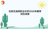 河北初中升学网为您提供更河北中专的最新资讯。为广大有意2026年报考石家庄通用职业中学的学生提供了全面的招生信息。本文将详细介绍该学院的招生信息。
