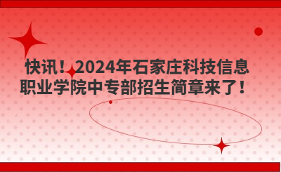 快讯!2024年石家庄科技信息职业学院中专部招生简章来了!