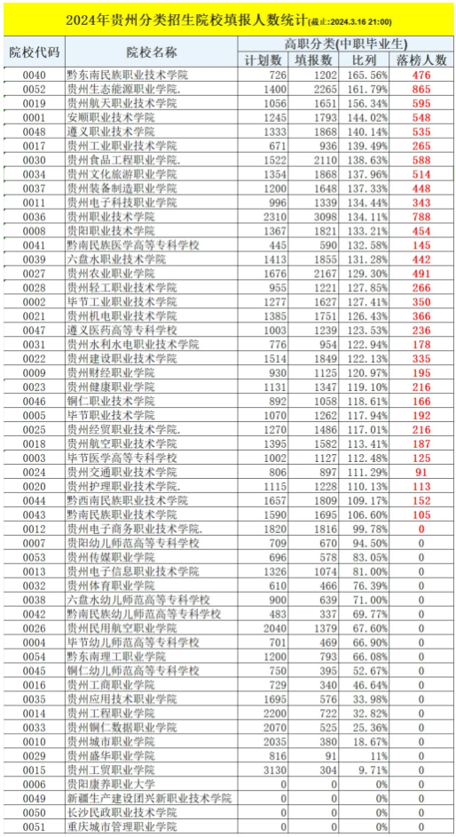 2024年贵阳中职分类报名人数统计,截止3月16日
