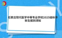 石家庄现代医学中等专业学校2025级秋季新生报到须知