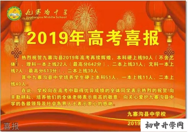 2021年九寨沟中学初中高考喜报九寨沟县中学校创办于1958年,是一所高级完全中学。学校确立了以“面向全体、全面发展、健康成长”