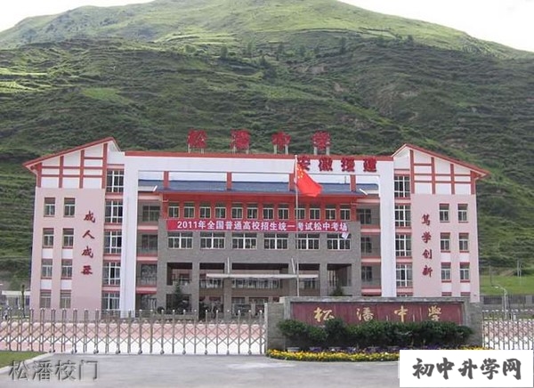 松潘中学建校于1938年,现发展为占地35亩,拥有126名教职工和1900余名在校学生的高级完全中学。1997年高中办学基本条件达标后,学校领导班子更新教学理念,狠抓学校管理,以“笃学、创新、成人、成器”为校训,以“育人为本、全面发展、崇尚创新、追求卓越”为办学宗旨,以“奋发严谨、热情精细”为教风,以“勤奋多思、谦虚进取”为学风,以“严肃活泼、团结创新、文明守纪、尊师爱生”为校风,以“提高学校教学质量和办学效益”为中心任务,全面推动学校各项工作。使高考升学率挤身全州前列。 松潘中学几易其名:1950年11月,更名为“川西松潘初级职业学校”,设师资科,畜牧科和中学科;1953年春改名为“四川省松潘初级农业学校”,班额为9个;1954年6月又易为“四川省松潘初级中学”。学生人数由复校初的38人,增加到1954年的191人(其间最多时达到243人)。到1957年底,有87人或当干部,或做教师,为阿坝州解放初期的各项建设事业培养了一批有文化的人才。解放后第一任校长由松潘县长任太和兼任,继任者有张明荣、葛学惠。 从1962年以来担任学校主要负责人的有陈文溥、张清志、陈贤君、蔡元福、刘帮源、姚仕文、丁培恭、姚斌、聂兆和、周永富、杨欣、杨家润、哈真富、高武、邓显峰。1958年松潘中学被评为阿坝州勤工俭学先进集体,1960年被评为四川省文教二等先进集体。后来贯彻“调整、巩固、充实、提高”方针,学校精简部分师生,规模缩小到3个教学班,学生不足百人。国民经济好转后,1965年招收19名高中生,松潘中学更名为“松潘中学”,成为完全中学至今。