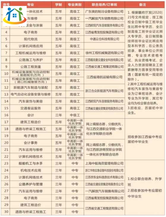 二、江西省交通运输学校2023年招生专业一览表