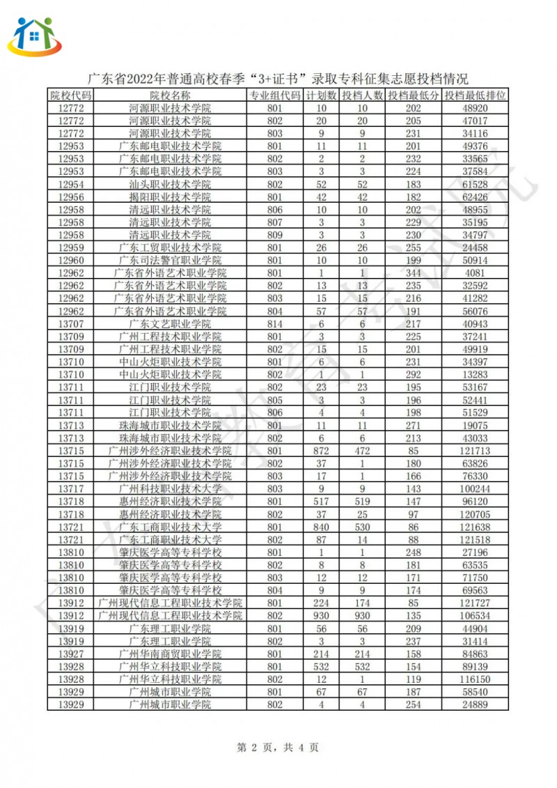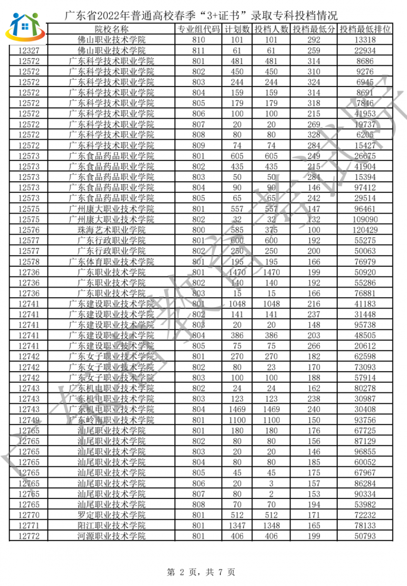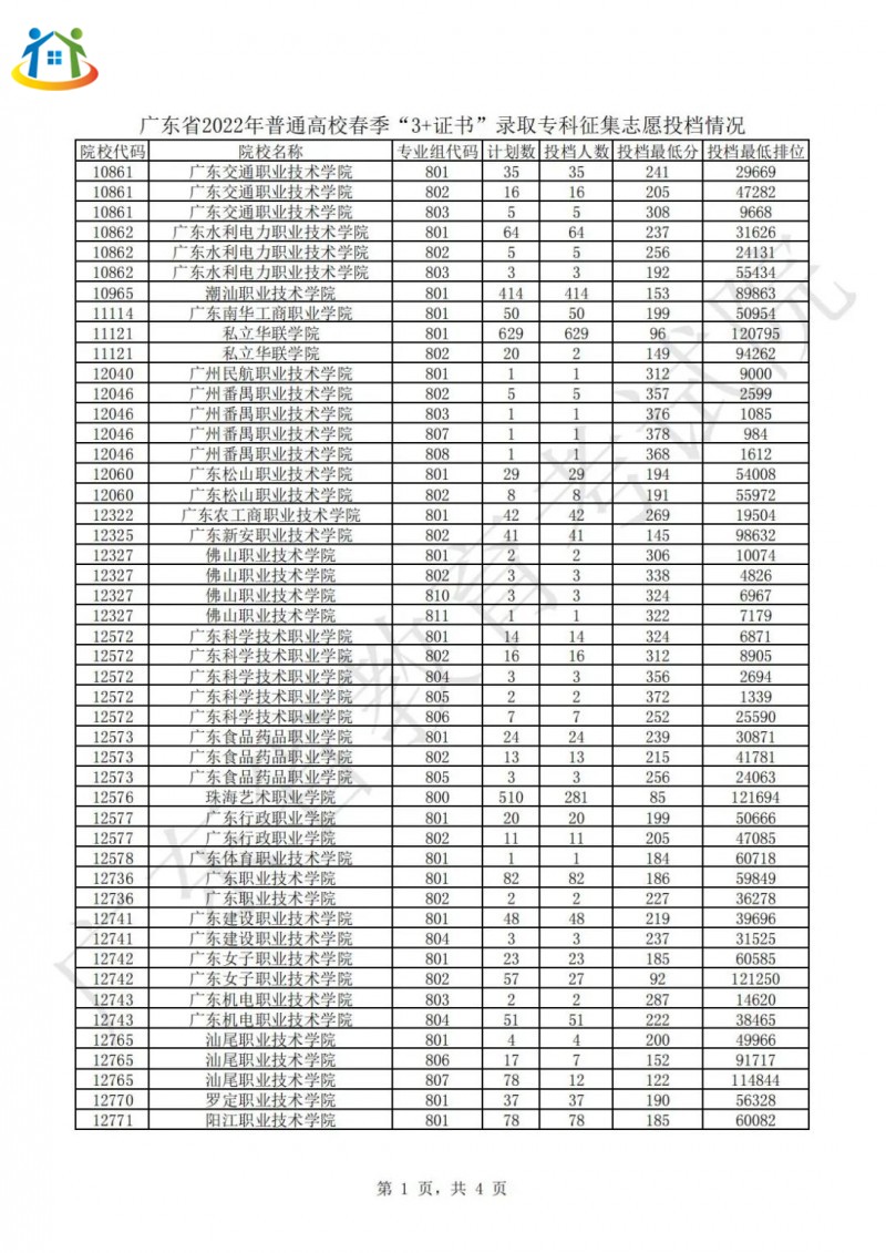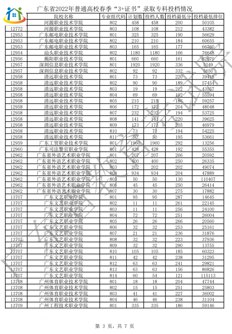 广东3+证书录取专科投档分数线汇总