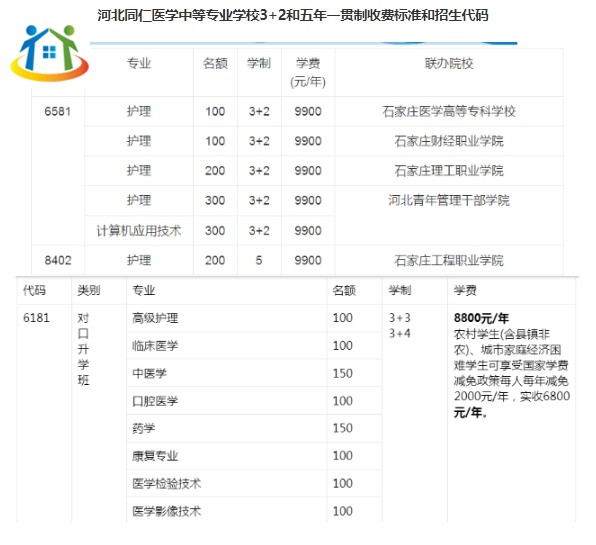 以上是“2023年河北同仁医学中等专业学校3+2和五年一贯制招生计划”的相关内容,如想了解更多关于河北中专学校、技校招生简章、招生计划、招生专业、中专技校、政策公告及招生问答等内容,敬请关注初中升学网!