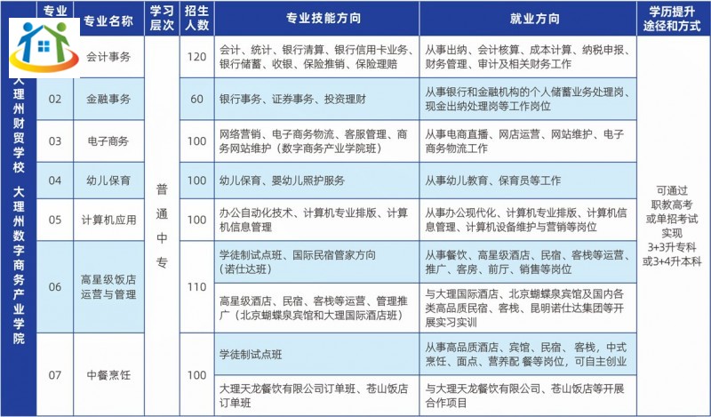 以上是“大理州财贸学校招生计划”的全部内容,以上内容仅供大家参考,大家还想了解更多关于云南中专中职等资讯,敬请关注云南中专升学网。