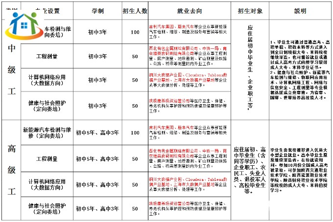 等级:中级(初中起点三年)、高级(高中起点三年,初中起点五年)