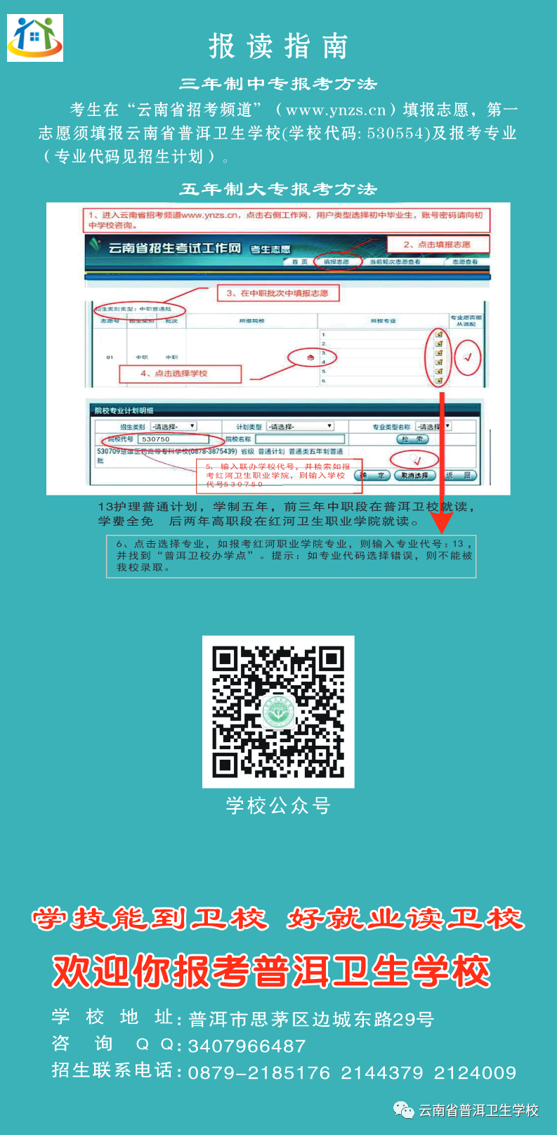 以上“云南省普洱卫生学校志愿填报指南”的全部内容,内容仅供大家参考,中专中职生如还想了解更多关于云南中专中职等资讯,如云南中专院校招生政策、分数线、就业前景等内容,敬请关注云南初中升学网。