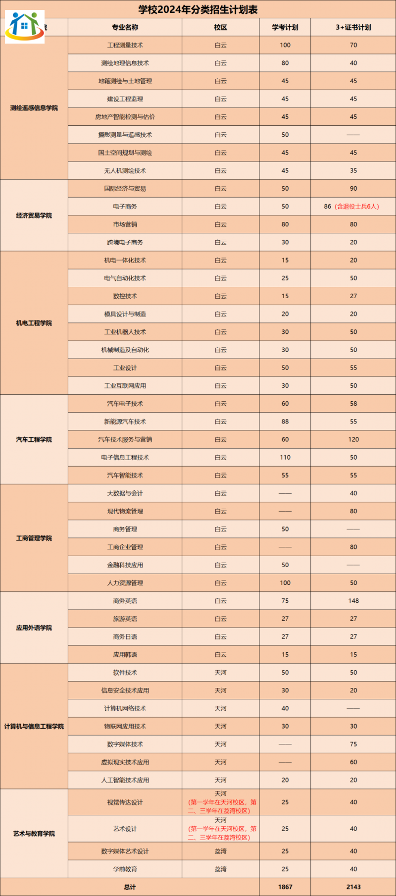 答:我校2024年春季面向46个专业招生4010个,其中学考计划1867个, 3+证书计划2143个。跟去年比,学考计划有所增加,3+证书计划基本持平。