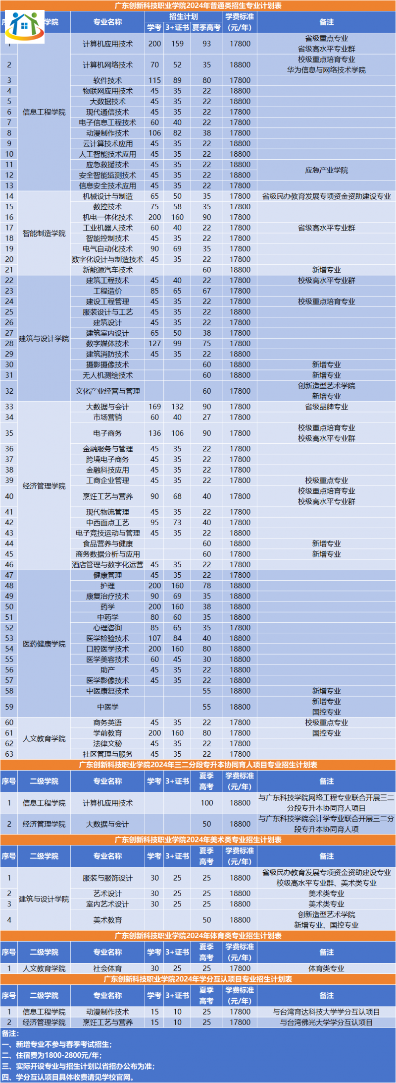 以上就是有关2024年广东创新科技职业学院3+证书招生计划的内容,仅供参考,最终情况请以报考当年实际情况为准。更多广东中职中专技工招生信息、广东中考资讯,广东技校资讯,敬请关注广东初中升学网。