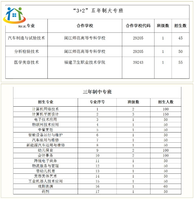 (2)“3+2”五年制大专统一由合作的大专院校负责录取,前三年在连江职业中专学校就读,学费全免;后两年在合作的大专院校就读,按照大专院校的收费标准进行注册;修满五年全部课程且合格的学生由大专院校发放全日制大专毕业证书(学信网可查询)。