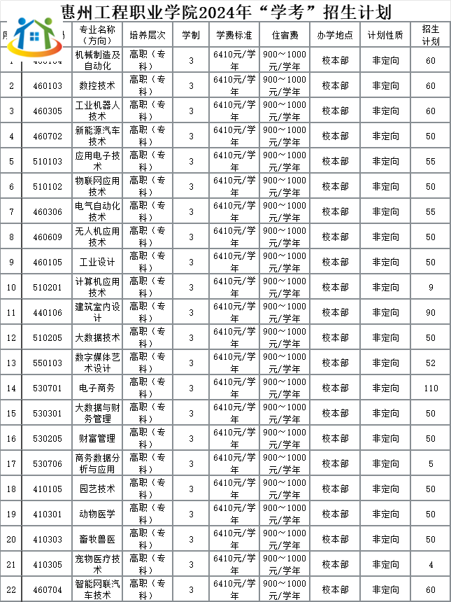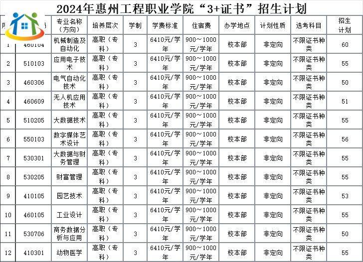 本文标题:2024年惠州工程职业学院3+证书招生计划