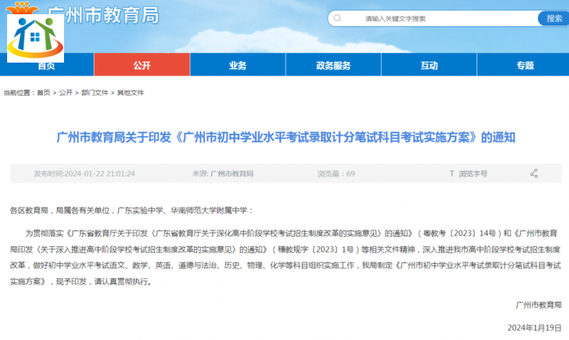 广州市教育局发布《广州市初中学业水平考试录取计分笔试科目考试实施方案》(下称“方案”),提出2024年至2026年广州市初中学业水平考试录取计分笔试科目考试日期调整与广东省统一命题中考日期一致;